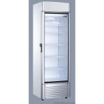 Umluft-Glastürgewerbekühlschrank mit großglächigen Innenraumverdampfer. Der fugenlose Kunststoff-Innenbehälter ist leicht zu reinigen. Die vorgeformten 22 Rostauflagen haben einen Abstand von 50 mm somit können die mitgelieferten engmaschigen Roste welche für die Aufnahme von PET-Flaschen geeignet sind bestmöglich dem zu kühlenden Produkt angepasst werden um eine optimale Raumausnutzung zu erhalten. Horinzontale Innenbeleuchtung mit separatem Schalter für Innen-/ und Displaybeleuchtung. Der Boden ist als Ausstellungfläche komplett nutzbar. Die Tür mit Griffmulde ist abschließbar únd mit einer Magnetsteckdichtung versehen somit servicefreundlich ohne Werkzeug wechselbar. 4 höhenverstellbare Füße.
